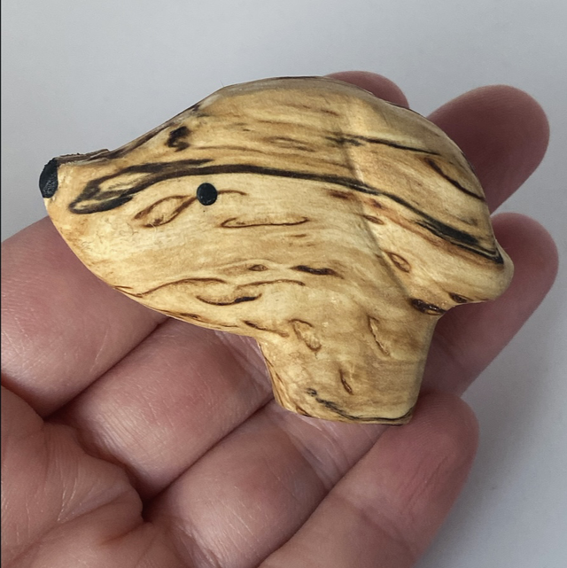Paikallisesta visakoivusta veistetty koira rintaneula. Valmistan kaikki työni verstaallani Vesannolla. Koko n. 4x5 cm.