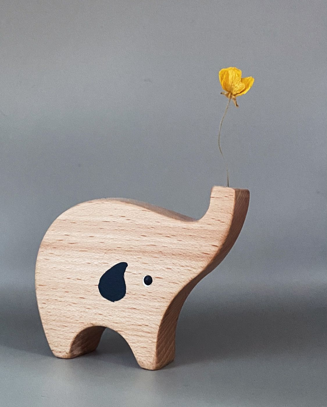 Pieni ja suloinen puunorsu. Valmistettu käsityönä verstaallani Vesannolla. Norsun kärsässä on pieni reikä kuivakukille. Materiaalina mummolani jalava Anjalankoskelta.